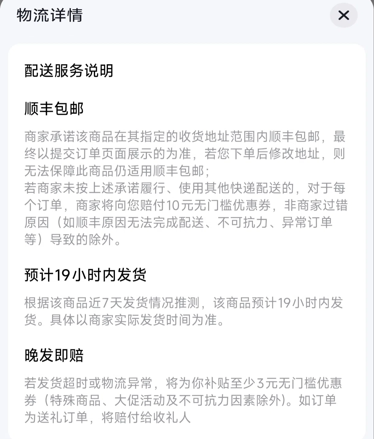 运费险 · 七天无理由退货 · 极速退款